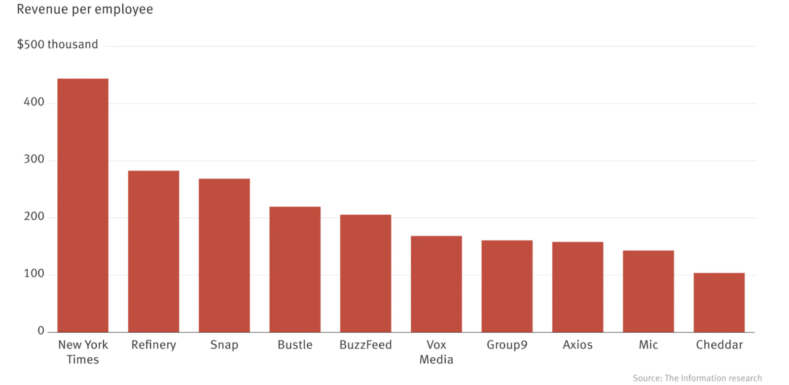 Even though The New York Times employs almost 1,700 reporters, it still makes more revenue per each of them than any other major publication.